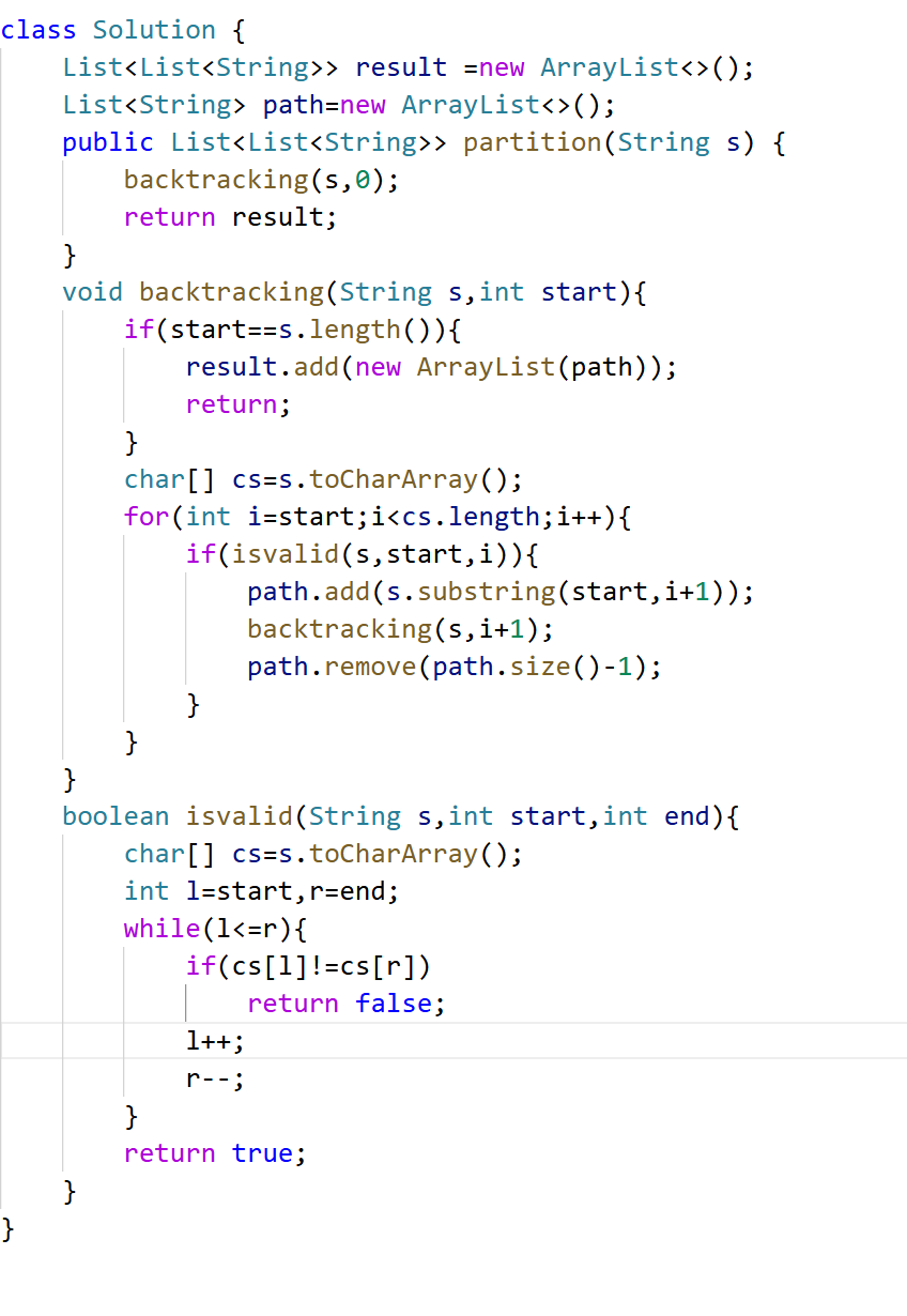 空间复杂度:O(n),递归深度为n,所以系统栈所用空间为O(n),每一层递归所用的空间都是常数级别,注意代码里的result和path都是全局变量,就算是放在参数里,传的也是引用,并不会新申请内存空间,最终空间复杂度为O(n)