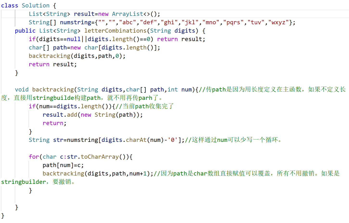 组合问题中:如果是一个集合的话,就需要startIndex。但如果是多个集合取组合,各个集合之间相互不影响,那么就不用startIndex。